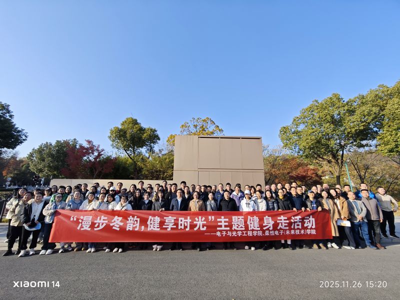 為迎接學(xué)院黨代會勝利召開,讓全體教職工在自然中放松身心、在運動中凝聚力量,11月26日下午,電子與光學(xué)工程學(xué)院、柔性電子(未來技術(shù))學(xué)院工會精心策劃“漫步冬韻,健享時光”主題健身走活動,組織全院教師走進(jìn)羊山公園,共赴一場冬日美景與健康活力的雙向之約。下午三點,參與活動的教師們齊聚公園入口廣場,臉上洋溢著期待與喜悅。學(xué)院黨委書記黃麗亞致辭,她表示,此次健身走活動既是響應(yīng)“全民健身”號召、關(guān)愛教職工身心健康的暖心舉措,也是學(xué)院以團(tuán)結(jié)奮進(jìn)風(fēng)貌迎接黨代會的生動實踐。“希望大家在漫步中欣賞冬景、在同行中增進(jìn)情誼,把運動帶來的活力與激情,轉(zhuǎn)化為教書育人、干事創(chuàng)業(yè)的強大動力,共同為學(xué)院高質(zhì)量發(fā)展蓄力賦能。”致辭結(jié)束后,教師們邁著矯健的步伐有序啟程,沿著蜿蜒的環(huán)湖步道展開了一場與冬日的親密邂逅。活動結(jié)束后,教師們在公園入口處集體合影。此次健身走活動全程約5公里,路程雖不算長,卻讓老師們在繁忙的工作之余,走出了校園、走進(jìn)了自然,既鍛煉了身體、舒緩了壓力,更增進(jìn)了彼此間的溝通與情誼。電子與光學(xué)工程學(xué)院、柔性電子(未來技術(shù))學(xué)院工會未來將繼續(xù)聚焦教職工需求,秉持“服務(wù)教職工、凝聚向心力”的宗旨,組織更多形式
